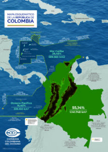 - El espacio marítimo de Colombia corresponde a un 44,86% aproximadamente del territorio nacional, pero es susceptible de crecer por lo señalado en el numeral 3.